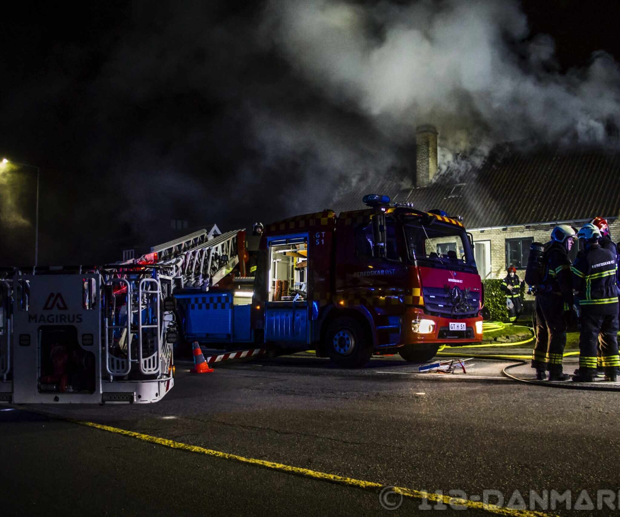 Kort efter ankom Beredskab Øst, Nordsjællands Politi, en ambulance og akutlægen til adressen, hvor især førstesalen stod i flammer. Vejen blev spærret, mens brandfolkene arbejdede på at få ilden under kontrol.