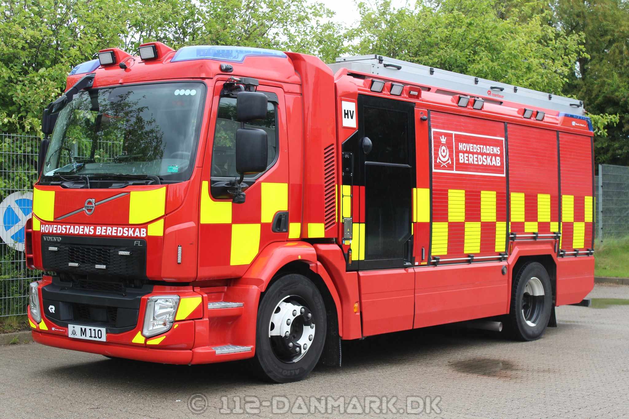 Hovedstadens Beredskab St. Hvidovre Sprøjte M110. Volvo FL280 årgang 2019. Opbygget af Rosenbauer. Den har 2000 liter vand