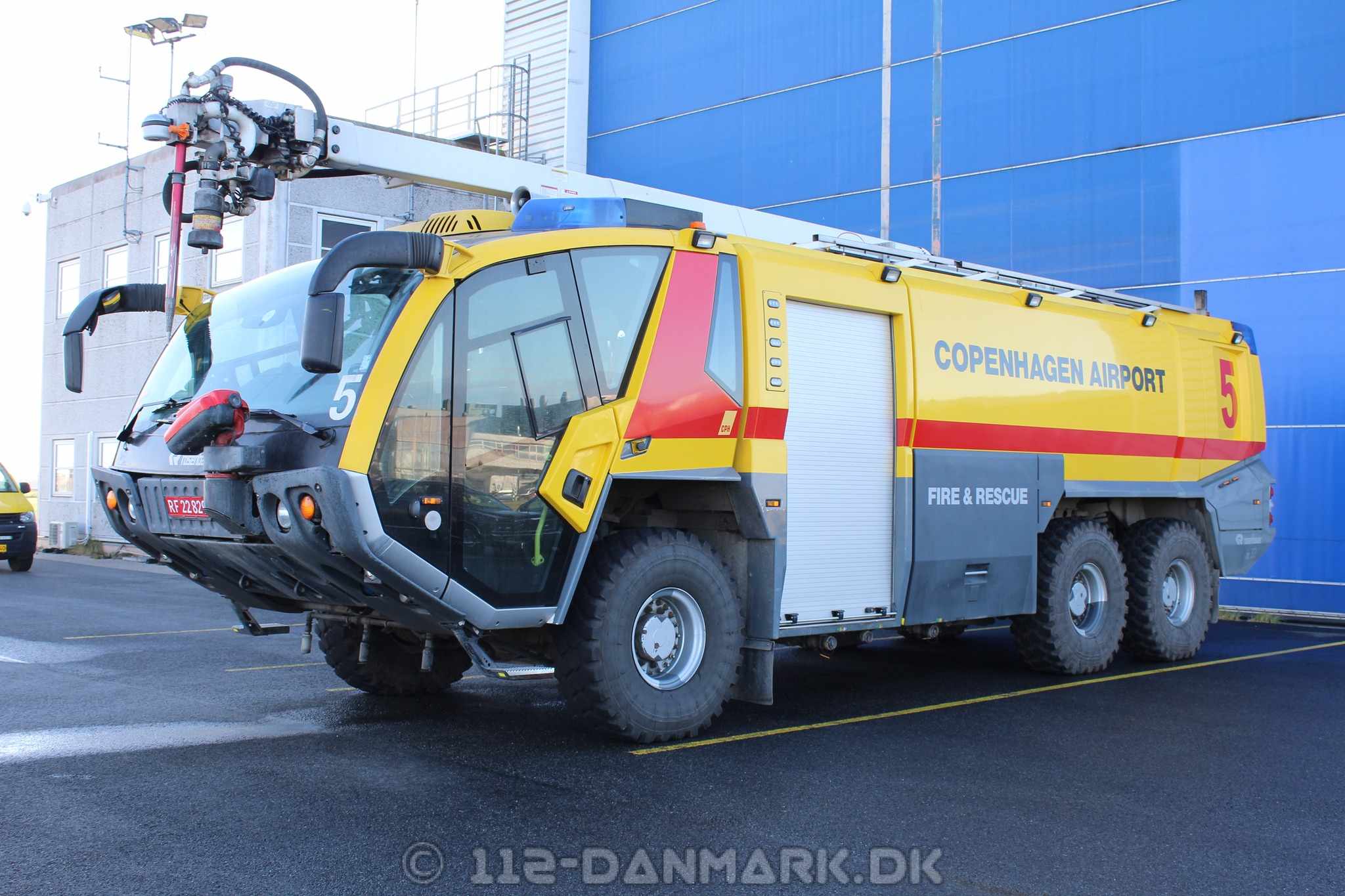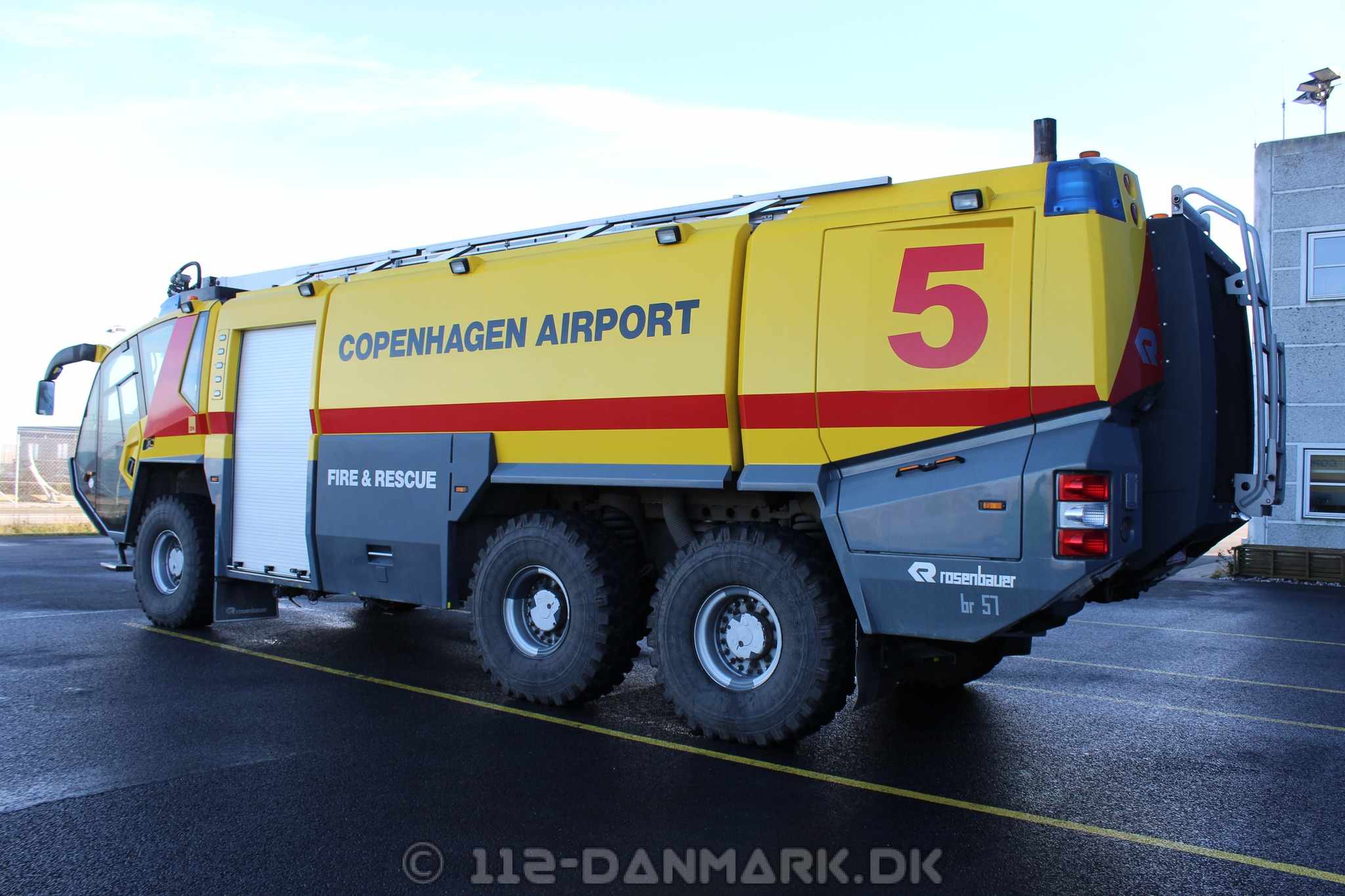 Københavns Lufthavn Brand og Redning CrashtenderSkumtender 5. Rosenbauer Panter årgang 2008. Den har 10.000 liter vand, 1500 skum og 250 pulver. udgået i 2025